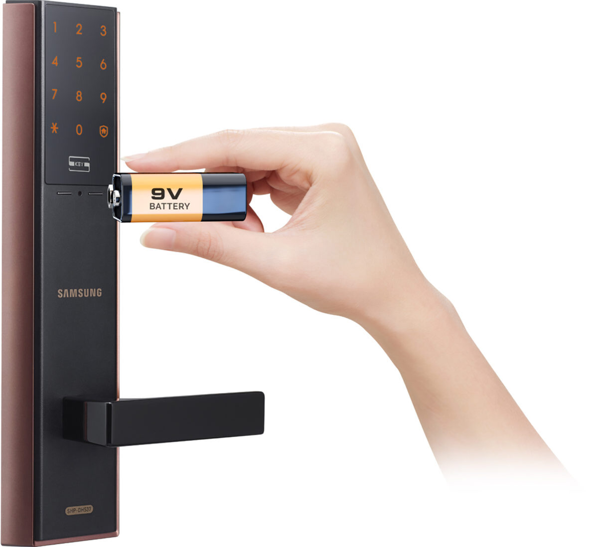 - Emergency Power Supply. Use a 9V battery from the outside to power the lock temporarily in case the batteries run out
