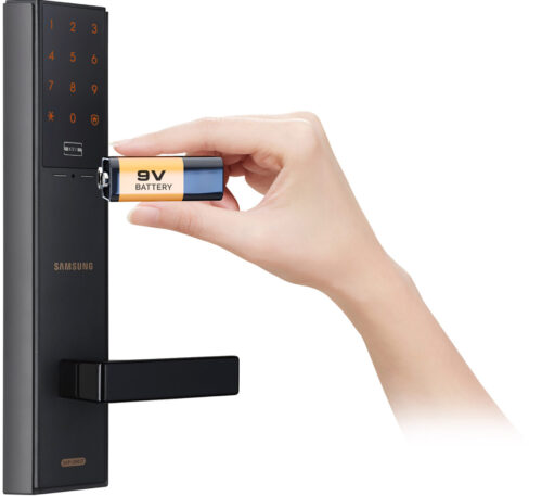 - Emergency Power Supply. Use a 9V battery from the outside to power the lock temporarily in case the batteries run out