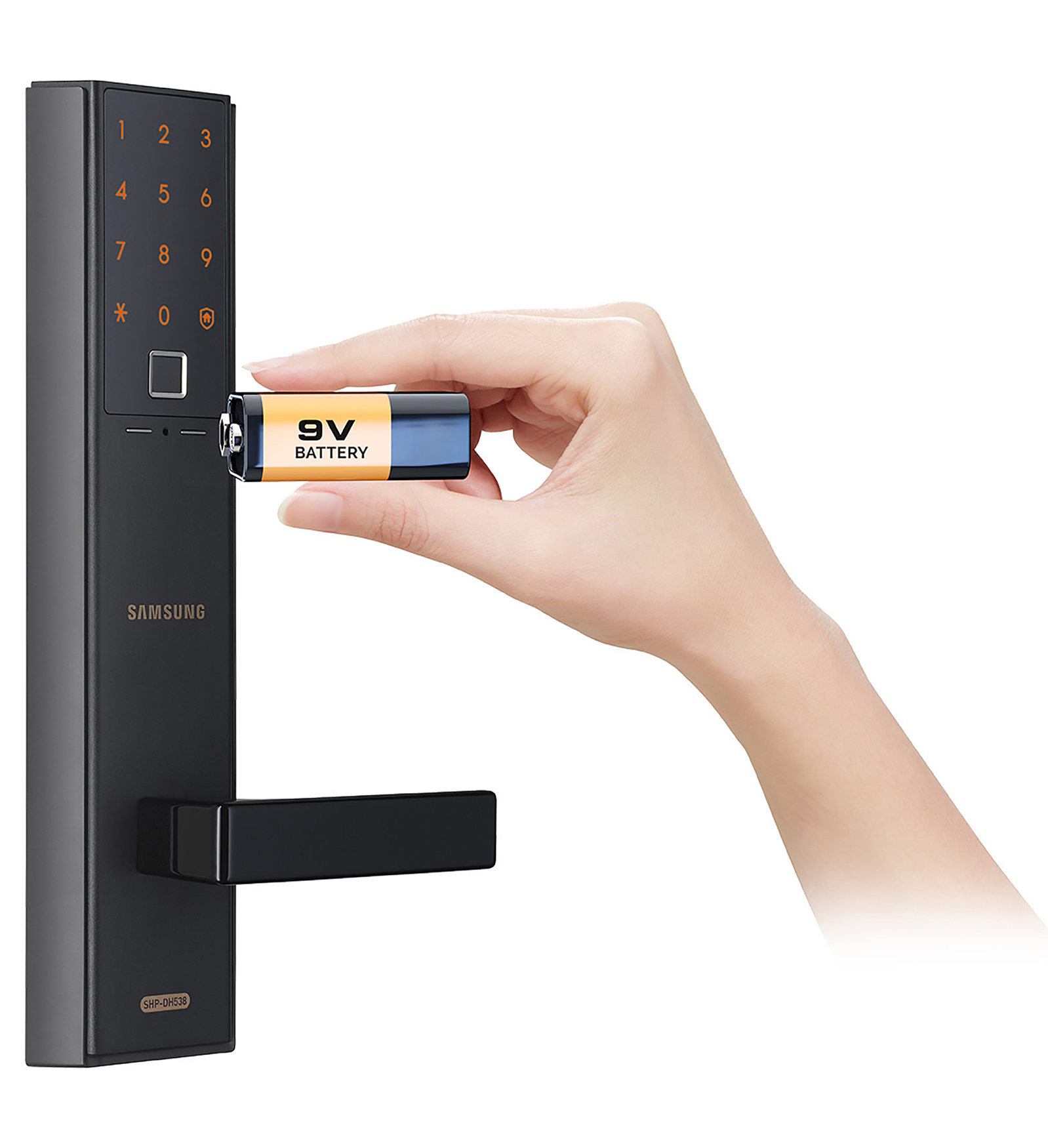 - Emergency Power Supply. Use a 9V battery from the outside to power the lock temporarily in case the batteries run out